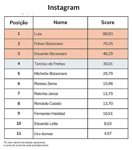 O levantamento produzido pela Nexus integra os scores individuais de cada plataforma, aplicando pesos proporcionais à relevância estratégica que cada rede possui para o negócio. Com isso, o resultado final reflete a performance conjunta do ecossistema digital da marca de cada partido, bem como o desempenho em cada rede social distinta.